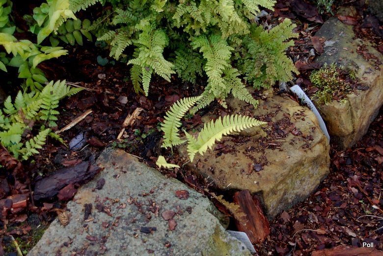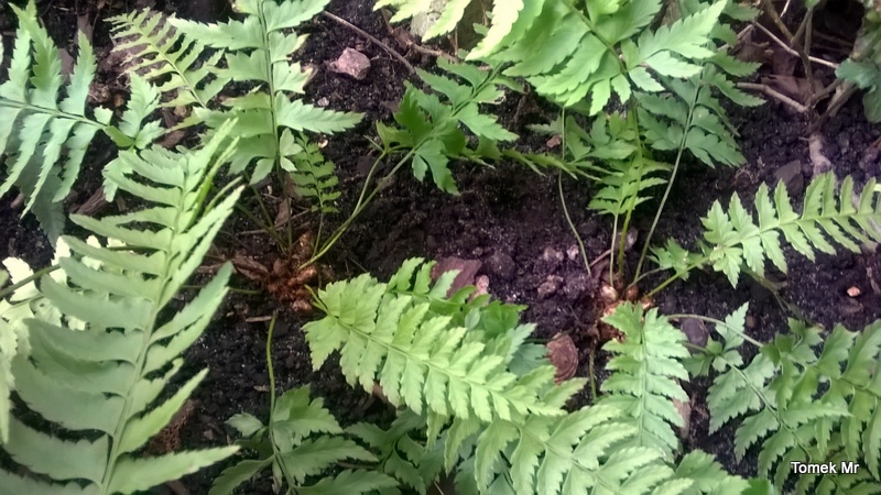 Na zdjeciu poniżej, widać różnicę w kolorze między Polystichum setiferum Iverianym i tripteron, którego liście kukają zza obiektywu. NIe wiem, czy docelowo będa takie jasnozielone? Tomasz, jak u Ciebie? think: