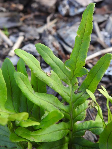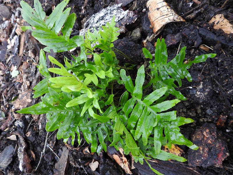 Polypodium), odmiana ta rozprzestrzenia się przez pełzające pod ziemią kłącza, z których wyrastają zimozielone, stosunkowo szerokie frondy, o