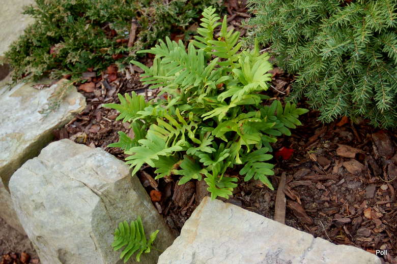Nie zauważyłam, szczerze pisząc, kiedy pojawia się i rozwija 'Whiteley Giant', więc nie mogę stwierdzić, że to Polypodium vulgare. :mur Podobno jest bardziej kapryśna, niż inne, ale ja nie narzekam, do tej pory jestem zadowolona z tego, jak rośnie. U mnie nie osiąga podawanej w źródłach wysokości 'giant', czyli 40 cm, maksymalnie 25cm. think: