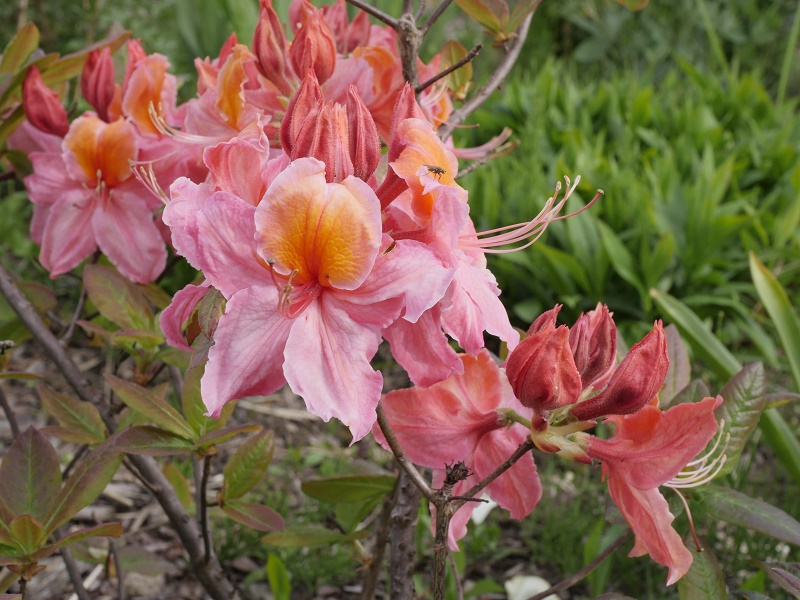 Selekcjoner: Eugeniusz Pudełek, Polska (wprowadzenie do handlu: 2021) Pokrój: zwarty, kulisty Siła wzrostu: roślina wolnorosnąca Liście: sezonowe, jasnozielone Kwiaty: różowe podbarwione pomarańczem z intensywną, pomarańczową plamką pokrywającą niemal całkowicie górny płatek... brzegi płatków lekko fryzowane... lejkowate, szeroko otwarte... duże... zebrane po 10-12 sztuk w wierzchołkowe kwiatostany Zapach: niewyczuwalny Termin kwitnienia: druga połowa maja Mrozoodporność: brak danych