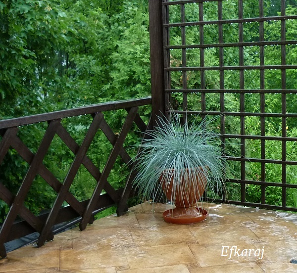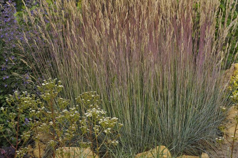 Kostrzewa sina kupiona kiedyś w jakiejś odmianie, chyba, dość łatwo się rozsiewa a że ładnie wygląda to ją zostawiam.