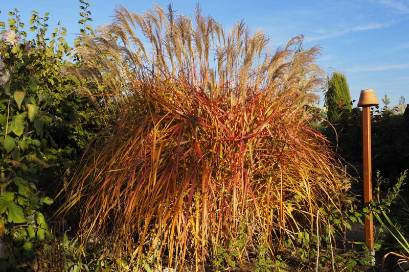 Wysokość: raczej niski, z kwiatostanem do 1,70 m Liście: jasnozielone, wąskie, jesienią żółto - pomarańczowe, pokrój łukowaty Kwiatostany: ciemno-purpurowe przewieszające się karbowane, później łapią pomarańczowe akcenty, przekwitając jaśnieją. Kwitnie bardzo obficie od końca sierpnia. Wymagania: ziemia umiarkowanie żyzna i umiarkowanie wilgotna... stanowisko słoneczne Mrozoodporność: strefa 5b