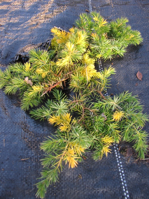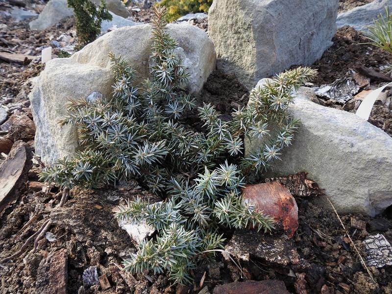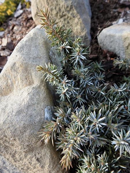Jałowiec nadbrzeżny 'Golden Wings' jesienią zeszłego roku przesadziłam na skalniak.