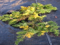 Płożąca odmiana osiągająca po 10 latach ok. 0.3 m. wysokości i 1 m. średnicy. Igły: kłujące, srebrnoniebieskie, długości 1 cm. Stanowisko: słoneczne Gleba: przepuszczalna, piaszczysta, umiarkowanie wilgotna do suchej