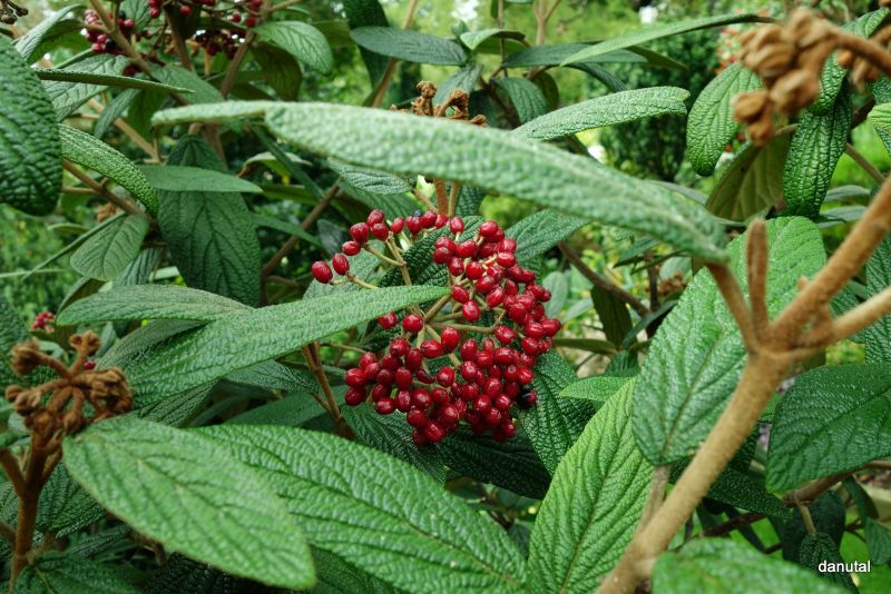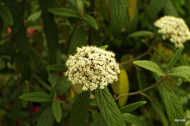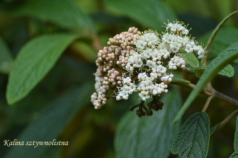 Kalina sztywnolistna (Viburnum rhytidophyllum) 07.06.2021 już powoli przekwitała w Arboretum w Wojsławicach. Osobiście przypadły mi do gustu błyszczące liście tej kaliny.
