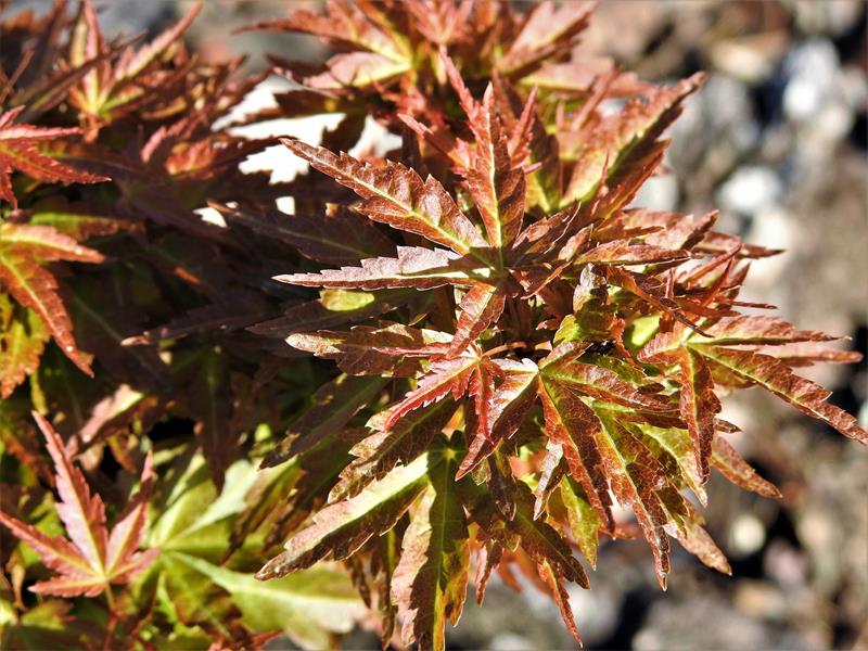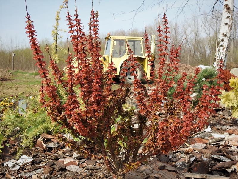 Klon palmowy 'Sharp's Pygmy' wyjątkowo ładnie przebarwia się tej jesieni.