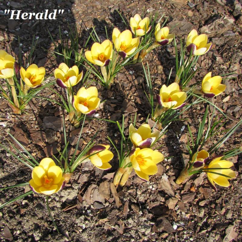 Krokusów 'Herald' mam w sumie tylko dwie małe kępki, ale obie muszę przesadzić na jakieś bardziej słoneczne stanowisko. W tym roku wyjątkowo długo kwitną i nawet dość obficie.