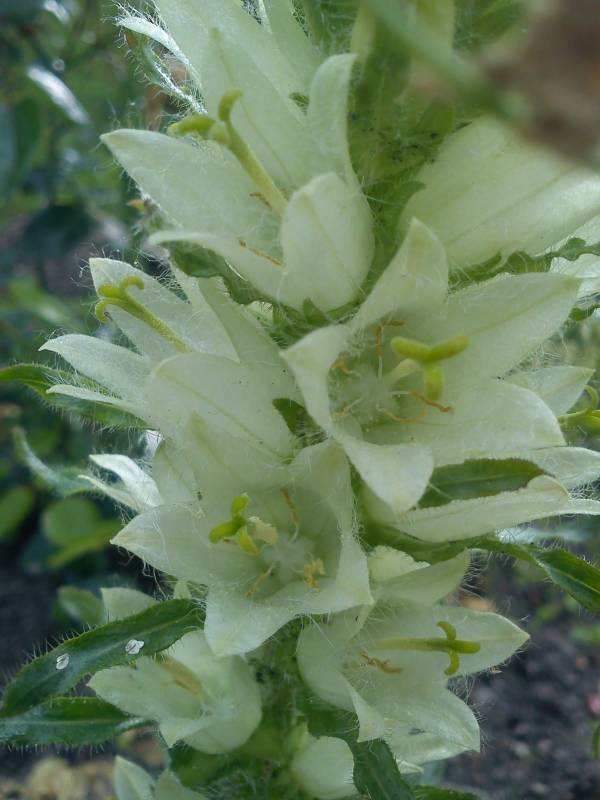 Kwitnie od połowy czerwca, czasem nawet do końca sierpnia. Kwiaty - małe owłosione dzwonki koloru zielonkawożółtego, zebrane w kłosy osiągające wysokość do 60 cm.