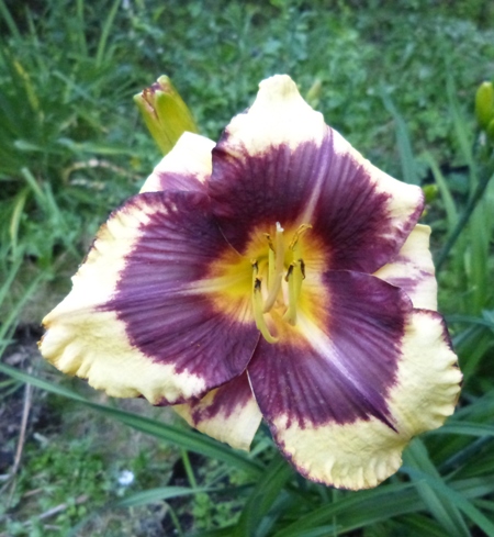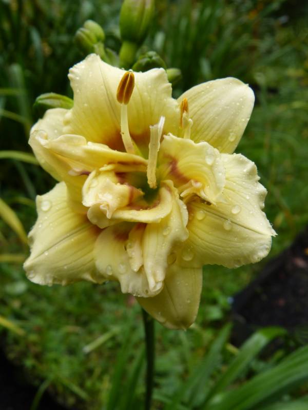 wymiary wg AHS to 50/8. Kolor blady żółty z burgundowym okiem. I znowu jak z rodziców Little Wild Flower × Roswitha tj. czerwono koralowego i tzw. brzoskwiniowego może wyjść blady żółty.... question zdziwko Znowu nie pasuje tu ten brzoskwiniowy....