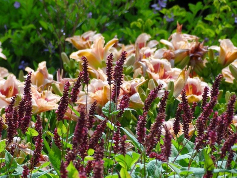 Liliowce rosną między czereśniami, którymi można się objadać do woli