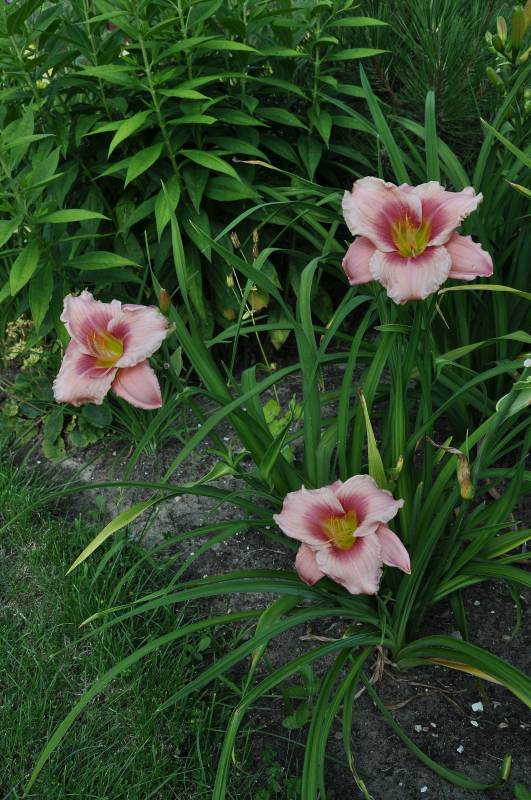 hodowca: Roycroft, 1997 wysokość: 70-80cm kwiat: o średnicy 15cm jasno różowy z ciemno różowym okiem i zielonkawą gardzielą. Pachnący. termin kwitnienia: czerwiec-lipiec