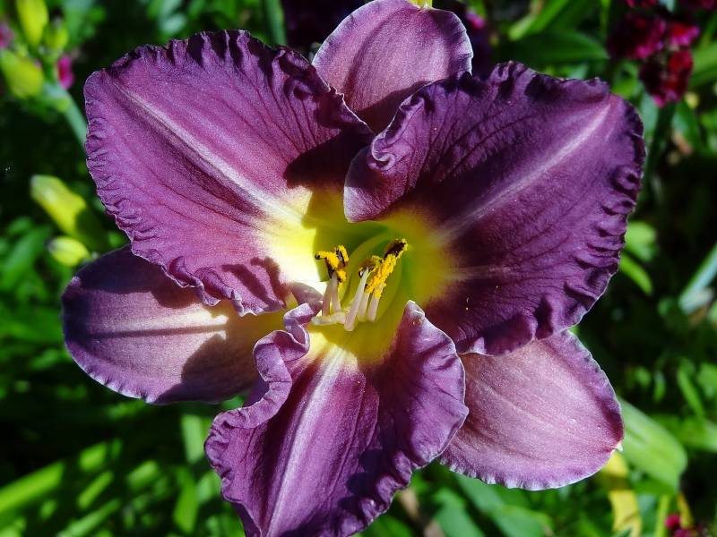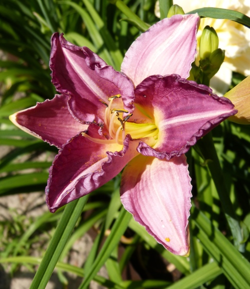 kwiat 15 cm, niebiesko-fioletowy z żółtą gardzielą. Po mojemu to jest różowo-fioletowy a niebiesko-fioletowy jest tylko "wieczorową porą"