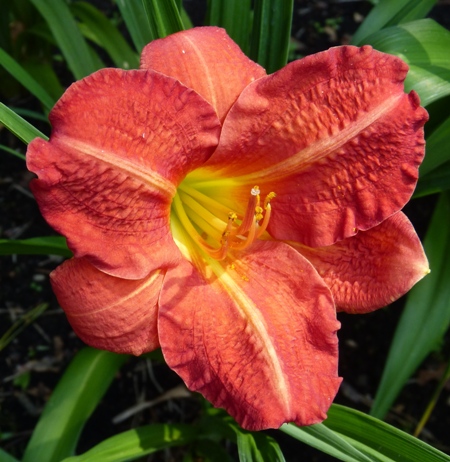 kwiat 10 cm, rdzawo czerwony z żółtą gardzielą
