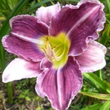 kwiat 14.0cm, Liliowo różowo z lawendowym okiem (sercem) dookoła małej zielonej gardzieli, może powtarzać kwitnienie i podobno pachnie