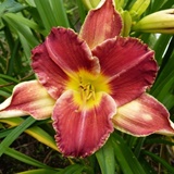 kwiat 13 cm, czerwony dwukolorowy z kremowym halo (cienkim rozmytym okiem) i zieloną gardzielą