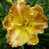 kwiat 15 cm, złoty "przeczesany" zmieszany (?) brązem z ogromną lemonkowo żółtą gardzielą, podobno pachnie