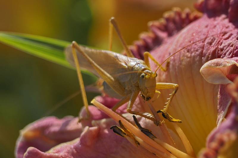 Wczoraj moimi liliowcami zajadał się taki jegomość (trochę jak kameleon bo nie zielony tylko w kolorze kwiatu)