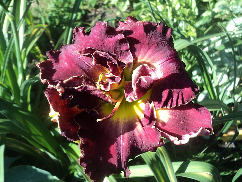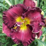 Hodowca: Carpenter-J., 2005 Wysokość: ok 60cm Kwiaty: kwiaty koloru purpurowo- fioletowego z lawendowym znakiem wodnym nad zielonym gardłem Wielkość kwiatu ok 15 cm. Stanowisko: słoneczne do półcienistego. Mrozoodporność: zimuje bez okrycia. Uwagi :zakwitł po trzech sezonach spędzonych u mnie , pierwsze kwiaty były pełne i nawet miałam wątpliwości czy odmiana nie jest pomylona ale kolejne kwiaty zrobiły się zgodne z wzorcem . Kwitnie długo i obficie..Liliowiec dla lubiących niespodzianki.