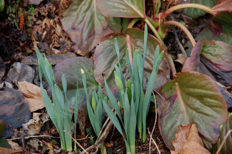 Na oddalonym o około 30 m od tego miejsca Sławojkowie, które jest położone o około 0,5 metra wyżej i jest bardziej narażone na zimne podmuchy znad łąk (wiele roślin zimozielonych źle tam wyglada z tego powodu), dopiero pokazały się nad ziemią zielone czubeczki.