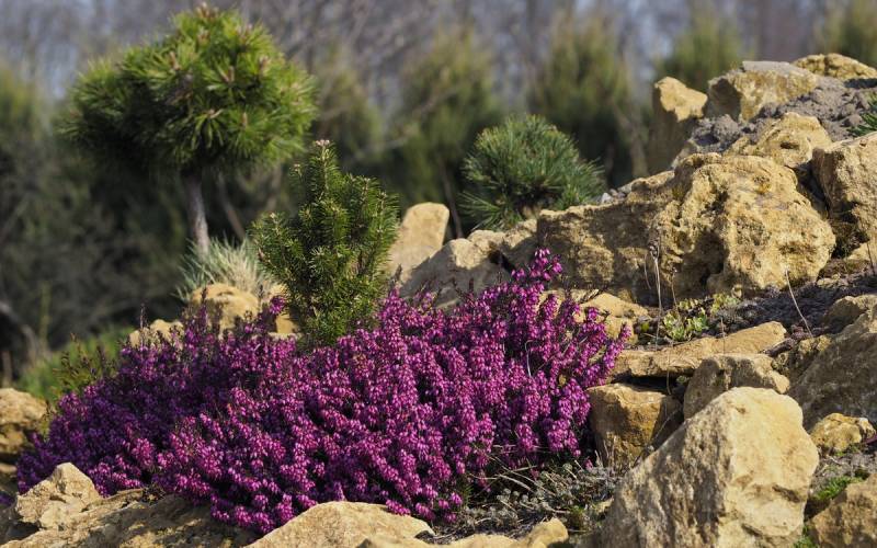 Dzisiaj na skalniaku było całkiem kolorowo, zakwitło trochę roślin cebulowych, a i wrzośce nadal kwitną . Może nie są to rośliny typowo skalne, ale w tym roku do ogrodów skalnych właśnie wrzośce polecam