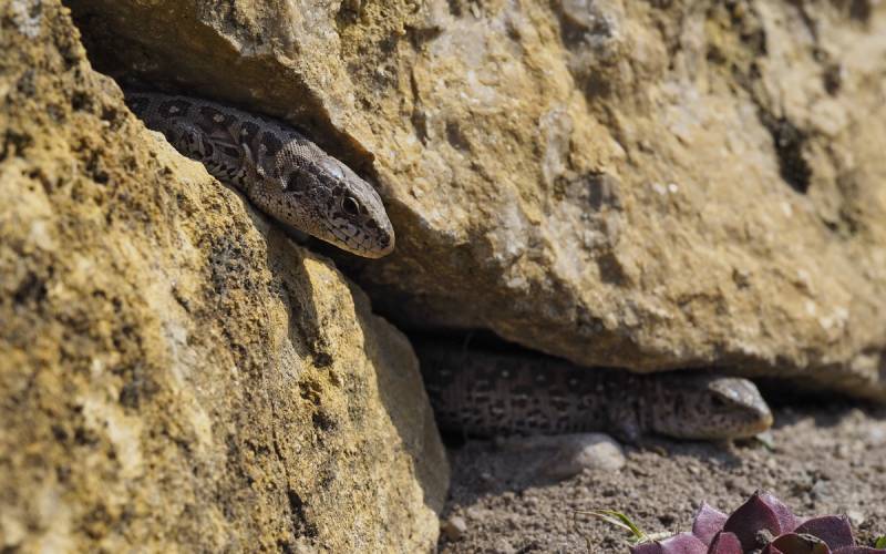 Z każdej "dziury" wychodzą gady. Jaszczurki mam na skalniaku wszędzie, czuja się jak u siebie. Jeszcze grzebiuszka ziemna sobie tam mieszka , ale to już płaz.