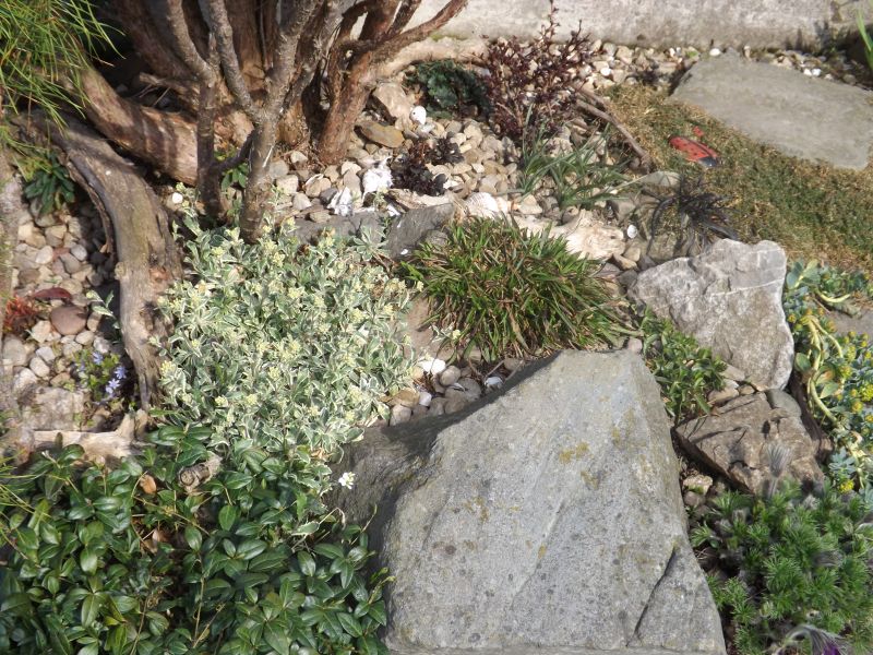 Mój skalniaczek skromny ale tez powoli zaczyna się robić kolorowo a większość drobinek mam porozrzucane w różnych miejscach między kamieniami.