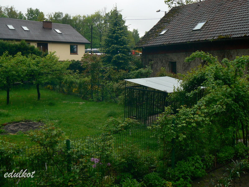 jeszcze bardziej w prawo czyli na zachód króluje klatka dla Mili ( jak koniecznie trzeba ją zamknąć, kiedyś pokażę jakie roślinki ona uprawia w środku