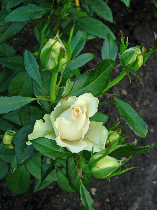 Róże powinniśmy sadzić tak, aby miejsce szczepienia było 3–4 cm pod ziemią. Najlepszym czasem na sadzenie róż z odkrytym korzeniem jest jesień (bez moczenia) lub wczesna wiosna (moczyć jakieś 1/2 h). Tuż prrzed wsadzeniem skrócić zmaltretowane korzonki (max. o 1/3) i ewentualnie górę jeśli nie była przycięta przed wysłaniem do nas. Wszystkie rany korzeniowe zawsze osypuję węglem drzewnym (lub zanurzam korzonki w wiadrze z takowym).