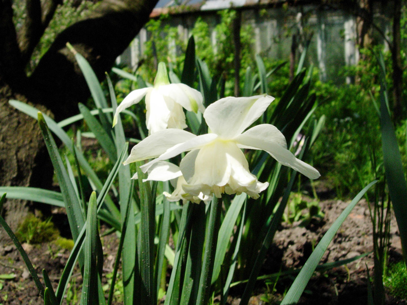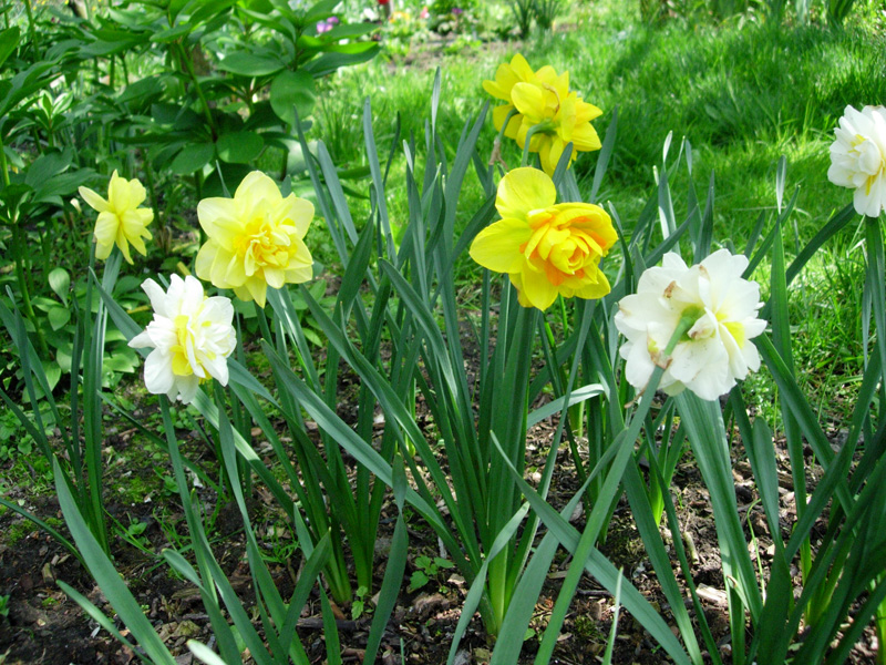 Tymczasem wiosną – proszę bardzo. Rośnie nawet ten, który w tamtym roku stracił kła w transporcie (ale jeszcze w tym roku nie zakwitnie). Natomiast cała reszta – większość po dwa pędy i stoją prosto jak żołnierze na warcie honorowej.