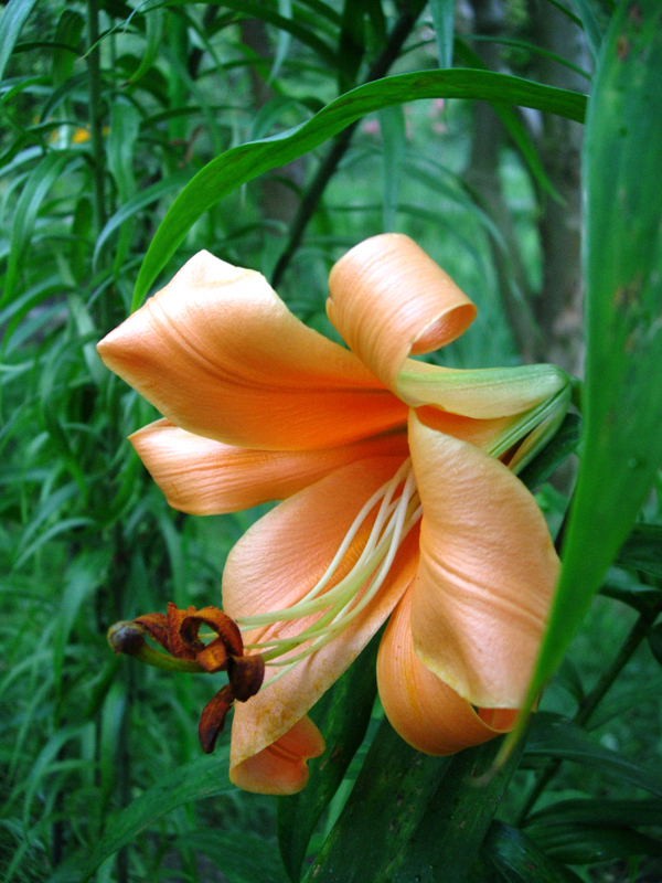 lilii lankongense. Cebulka est jeszcze mała i nie wiem czy ją zostawić, gdzie jest, czy przesadzić w lepsze miejsce. Chyba ją jednak zostawię, bo inaczej nigdy nie będę pewna jakie środowisko jej pasuje.