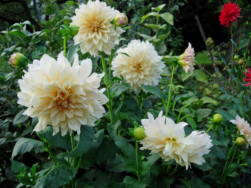 Wydaje mi się, że peonie całkiem dobrze się kumplują z daliami. Znowu je tak posadziłam. Peonie miały wiele pączków, więc sąsiedztwo im nie zaszkodziło. Wprawdzie sporo pączków obumarło, ale składam to na karb tego, że karpy mogą być jeszcze nie za duże, a poza tym niektóre odmiany muszą się lepiej „zasiedzieć”.