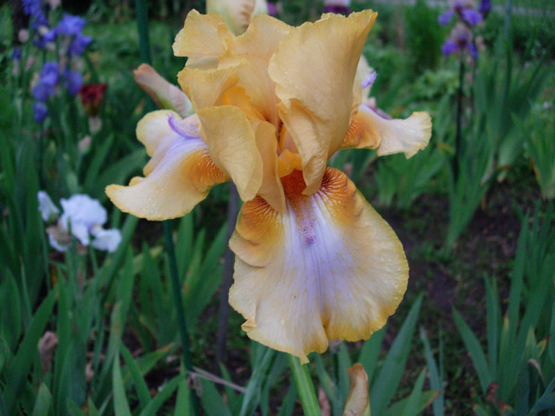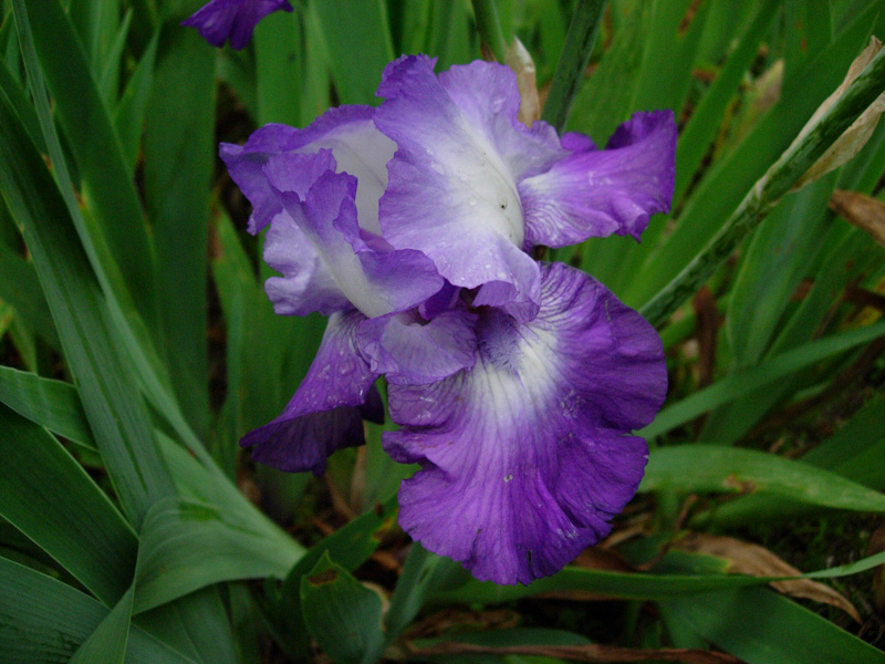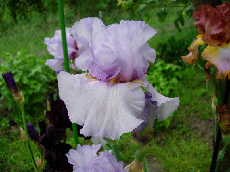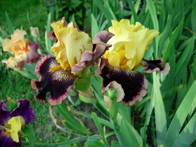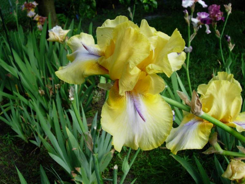 . To może być Sarah Bernhardt. Krzaczek już całkiem, całkiem. Pewnie w przyszłym roku będzie kwitł (w tym już chciał). Jest jeszcze jedna wiśniowa – pachnąca. Ta tworzy spory krzaczek, ale głównie z małych, krótkich kłączy. Zastanawiam się, czy tych kłączy trochę nie oddać, bo wiem już, że są zdrowe.