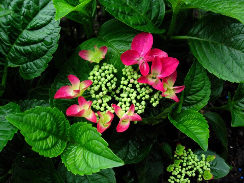 Dagusiu, hortensje to w zasadzie dla mnie nowość. Jedną, czerwono-zieloną dostałam dwa lata temu, reszta przyszła do mnie w tamtym roku. Ta najstarsza wydaje się, że później rozpoczyna rosnąć i kwitnąć, a tamtego roku wiosną myślałam, że mi zmarzła i tak ją obciachałam, że miała jeden kwiatek. W tym roku byłam już mądrzejsza, więc czekałam i czekałam z cięciem. Ten późny przymrozek załatwił mi dużo świeżych odrostów hortensjowych, ale w końcu jakoś dały radę i rozpoczynają kwitnąć. Masz jednak rację – liście też są śliczne. Wiem, że Ty masz duży kawał ogródka, ale wiesz, ja te swoje obsypałam bardzo wysoko zrębkami i dały radę. Może u Ciebie takie wióry późno rozgarniane też by pomogły?