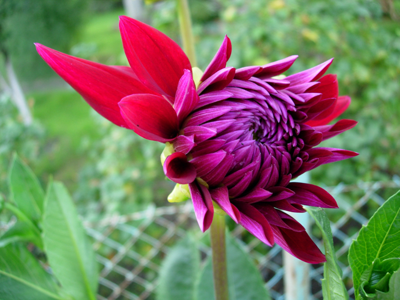 Tu dalia, która w tamtym roku nie zakwitła. Prawie bordowa – wygląda jak aksamitna. Może Black Jack?