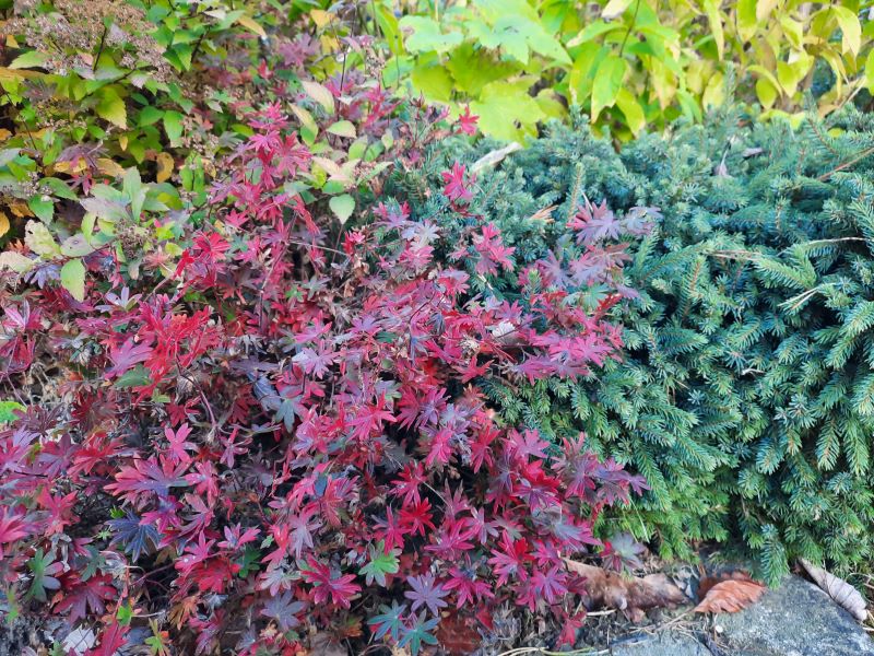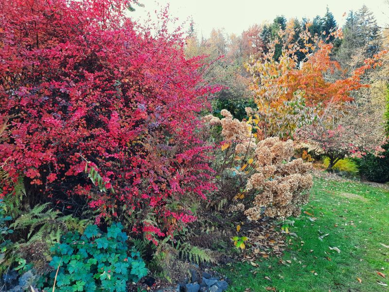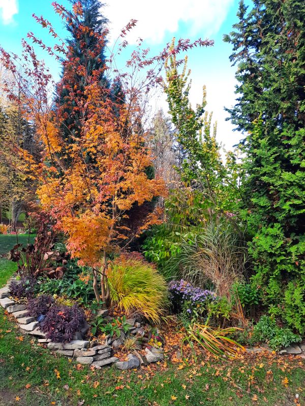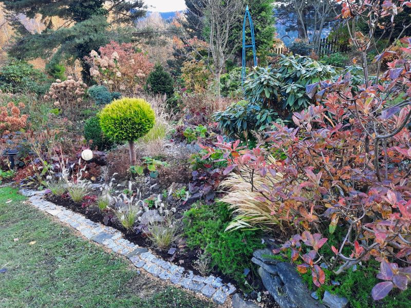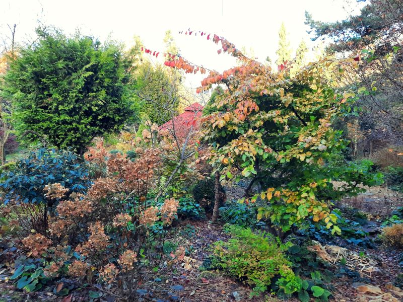 Latem ogród pięknie kolorowy, ale jak widać i teraz, po mrozach, nadal tak jest.