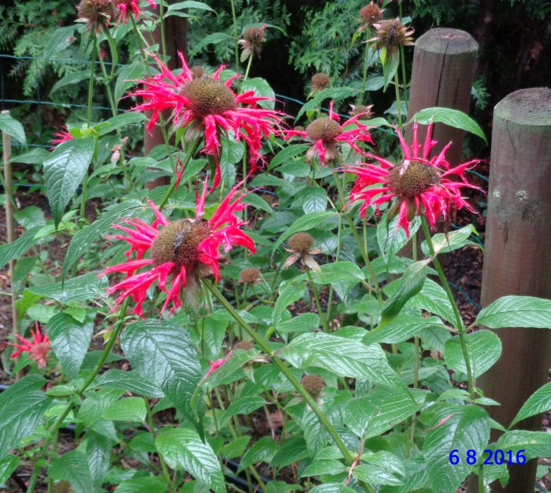Jakaś jeżówka, mam nadzieję, że to ta zwyczajna, purpurowa; z lewej w głębi, ostatni zakup z BR: monarda 'Kardinal'