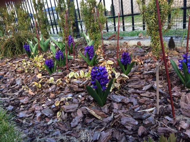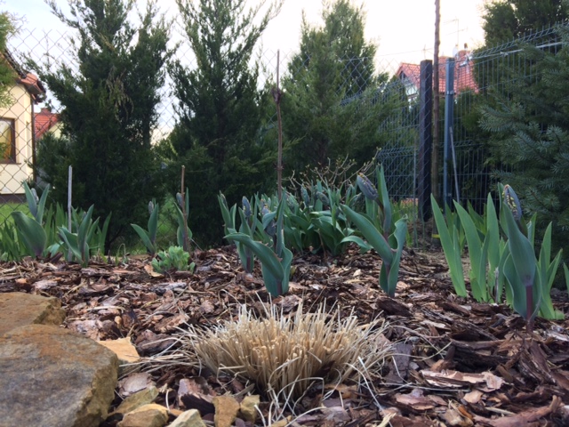 każdą lilię zaznaczyłam patykiem- jak tak oznaczam kiełkująće wiosną rośliny, to psiaki nie biegają w tych miejscach.. Zanim rok temu na to wpadłam, to 2 lilie mi stratowały..