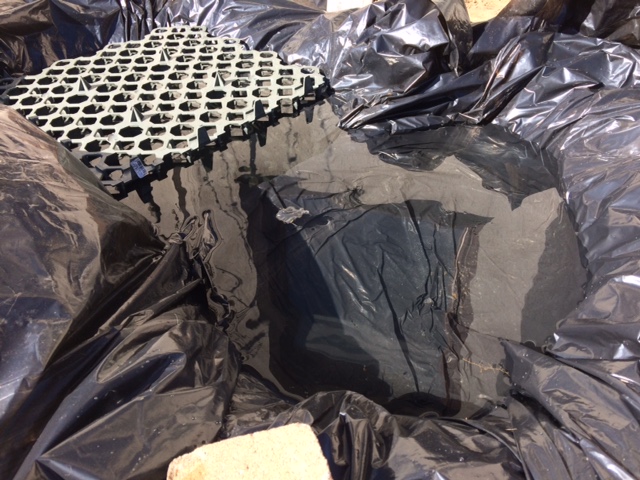 Jeszcze może coś o kosztach. pompka za 60pln, kastra niecałe 20pln, kratka plastikowa za 10pln i folia- ja kupiłam zwykła budowlaną za 20-pare pln za paczkę. Pocięłam ja w większe kawałki i ułożyłam kilka warstw.