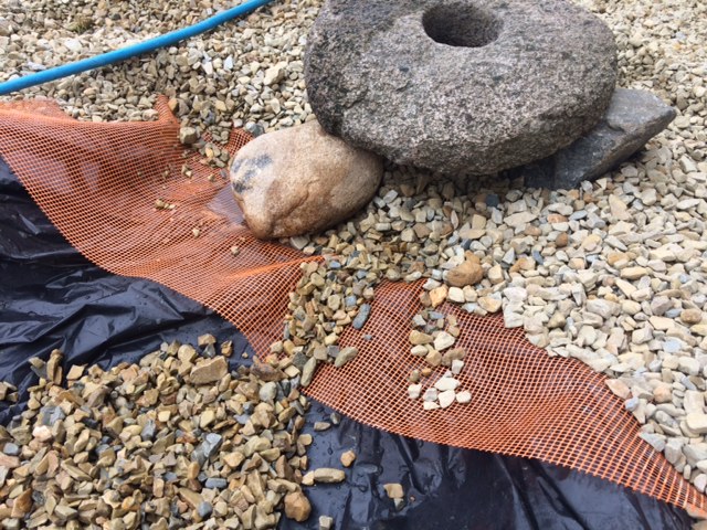 Wyraźnie brakowału mu mocniej chlapiącej wody z żarna- ułożyłam więc kawałek piaskowca, żeby robił się strumień.. Jak widać dobrze trafiłąm