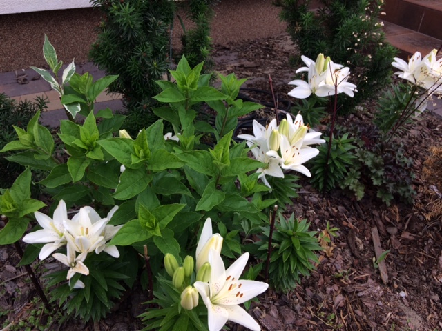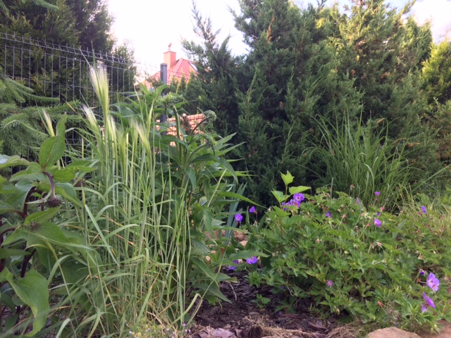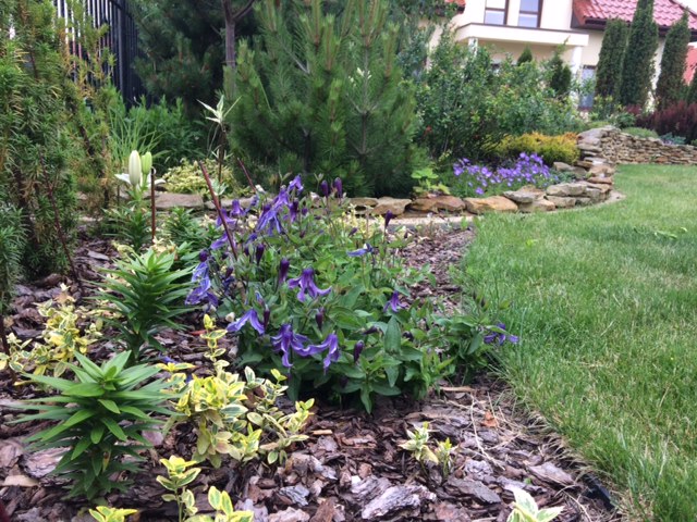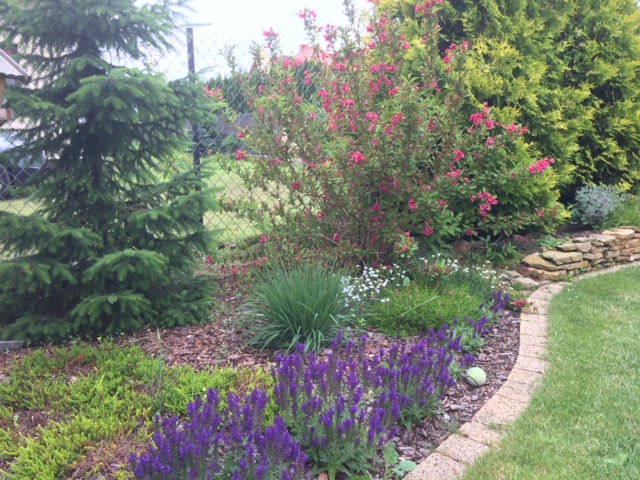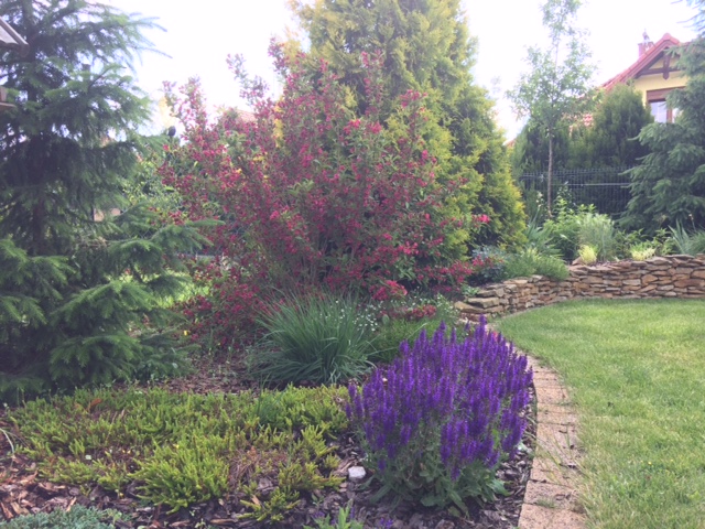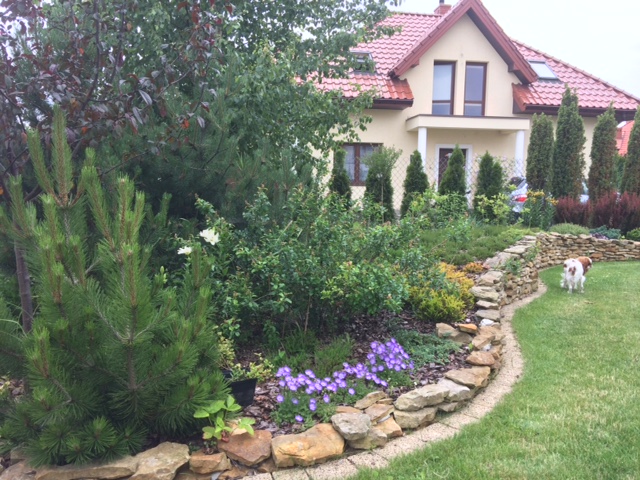 Rabata rodkowa powstaje baaardzo opornie- wciąż w weekendy albo w rozjazdach, albo inne zajęcia..i wszystko w zawieszeniu. Mam nadzieje, że może przez lipcowe weekendy uda się i rabatę z trawy obedrzeć, obrzeża zrobić a przede wszystkim trawnik na nowo wysiać wzdłuż opaski.