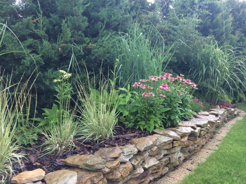 Z drobnych zmian..pojawiła się nowa trawa nad ciurkadełkiem.. Hakonki rosły na widoku i ciągle były podbryzane przez moje dwie kozy.. Przesadziłam je głębiej, żeby tak nie kusiły, a w ich miejsce pojawiła się molinia o dzwięznym imieniu Edit Dudszus