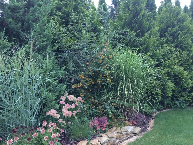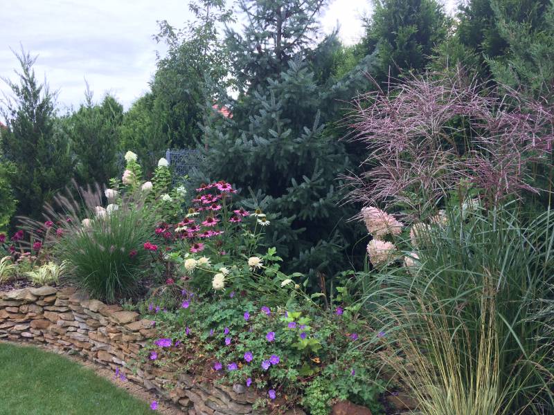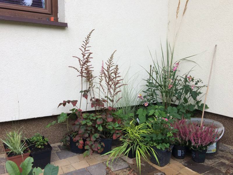 Czekają na posadzenie/zadołowanie: zawilce w 3 odmianach, rozplenica, trzcinnik, miskant, hakonki, tawułki, kilka sztuk wrzosów.