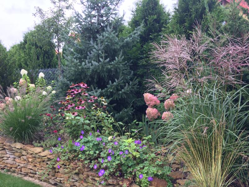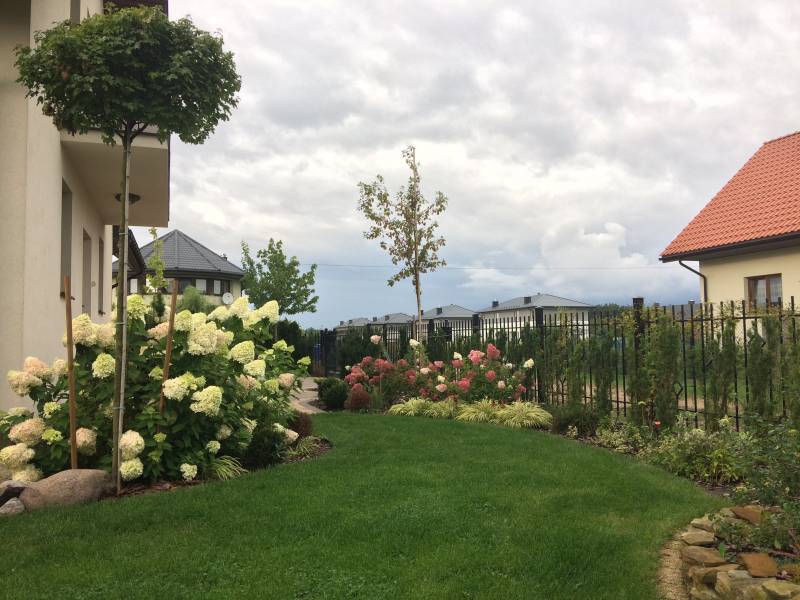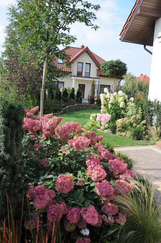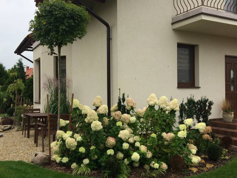 będzie fajnie, jak Limelighty w głębi tarasu, pod oknem, podrosną tak okazale, jak te na skraju.