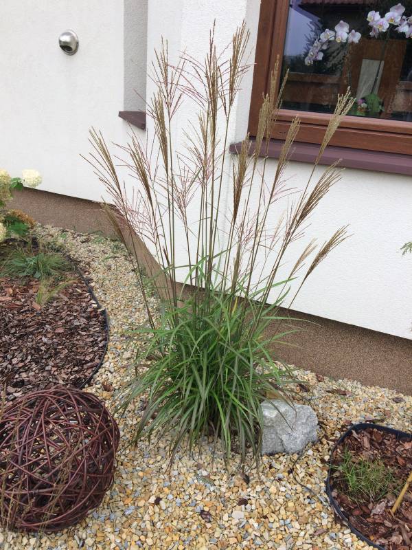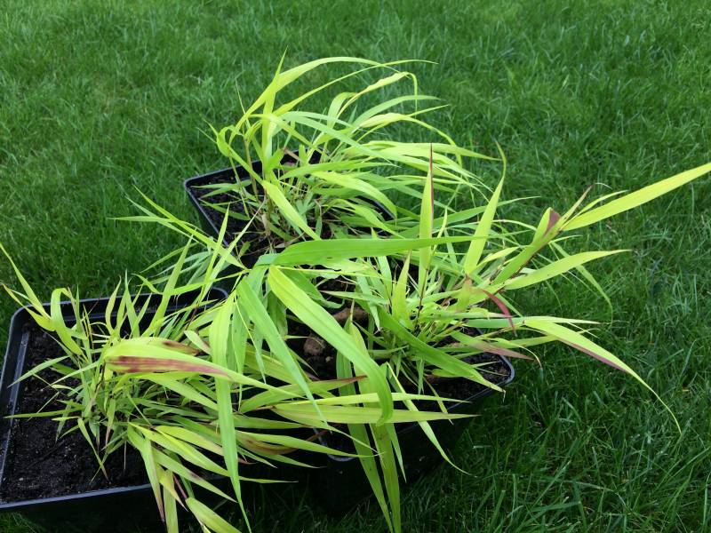 hakonechloe Sun Flare. Przy odrobinie słońca ma podbarwione na czerwono końcówki- taki hakonkowy Red Baron