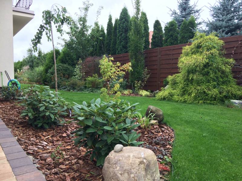 za domem już całkiem nieźle trawa wzeszła, oczywiście widzę sporo dziur, ale to raczej do dopracowania w przyszłym roku. Na razie z przyjemnością patrzę na okolice tyłu domu- miejsca które usilnie omijałam wzrokiem- jest opaska, schludny trawnik, nowa rabata rodkowa.