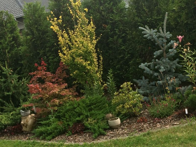 posadziłam Phantoma- na razie efekt mocno mizerny- raz, że krzaczek ma co prawda długie przyrosty, świetne do formowania, ale zaledwie 4..a po drugie- nadal siedzi tu Palibin, na którego nie mam pomysłu