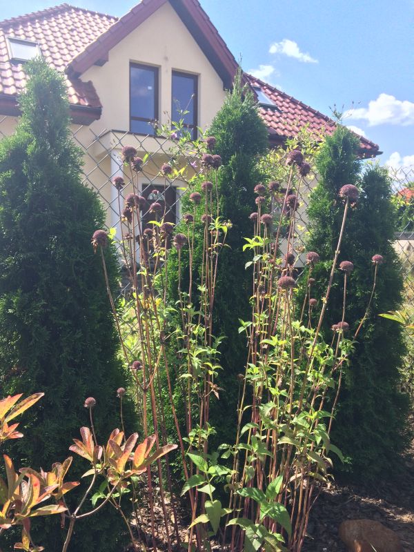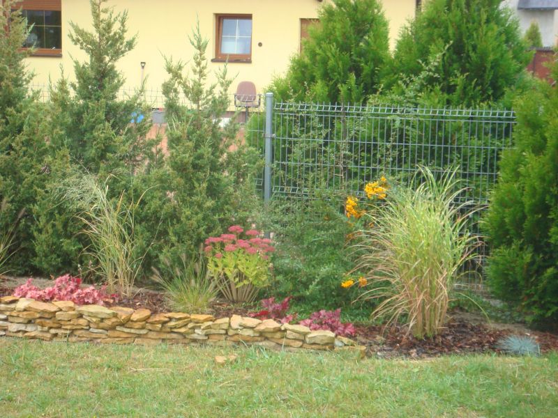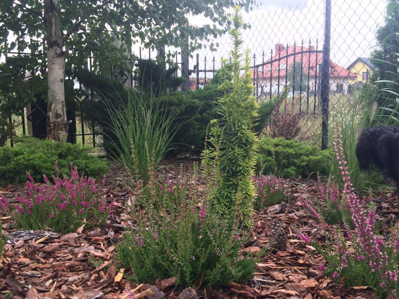 Wiedziałam, że miskanty późno startują i liczyłam się z tym- nie potrzebowałam nic zimozielonego tylko jakiś miły akcent.. Skoro jednak Helgi dorastaja mi do kolan, to trudno nazwać to żywopłotem.
