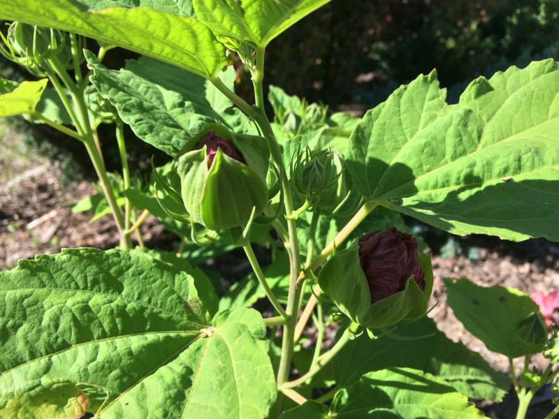 hibiskus bagienny- po raz pierwszy zapomniałam okryś na zimę kopczykiem z kory i siły zbierał aż do czerwca.. Kwiaty tez mocno spóźnione- rok temu kwitł 2 tyg wcześniej. Cieszę się, że przeżył!