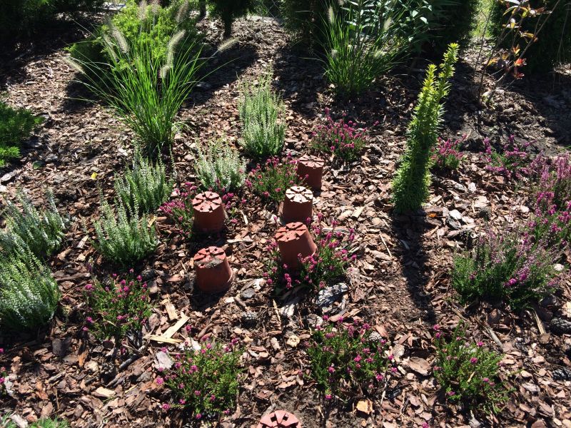 Wyszkolona jestem, że wrzosy nie powinny rosnąc paskami, a raczej łągodnymi łukami, zachodzącymi na siebie- a teraz wyszedł biały pasek w tle.. No nic, pewno czeka mnie przesadzanie- załamka..