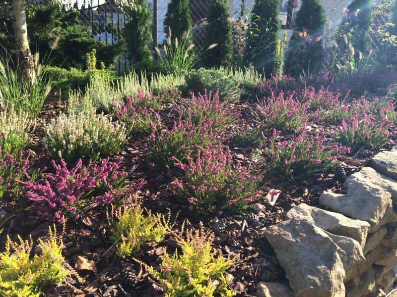 te wysokie wrzosy na brzegu kupowane w tym roku, dlatego takie wysokie. Mam wrzosowisko 3ci rok i zauważyłam, że nowe wrzosy kupuję z długimi kwiatostanami, rok po posadzeniu wrzosy dość skromnie kwitną i mało przyrastają, rozpędu nabierają w kolejnym roku, ale nie mają aż tak długich kwiatostanów, jak w chwili zakupu.